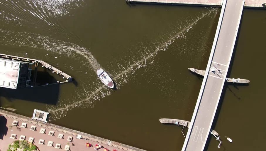 At Westerdok in Amsterdam, close to central station, and where the canal exits to the IJ river, eagle-eyed passers-by will see a ripple running diagonally across the water. This is the world’s first bubble curtain to capture plastic pollution, the keystone technology developed by Amsterdam cleantech startup, The Great Bubble Barrier.