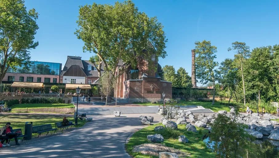 The emblematic Beurs van Berlage – a national Dutch landmark with roots dating from the 17th century. It was revamped by late-19th-century architect Hendrik Petrus Berlage, who envisioned a volkspaleis (folks palace). Completed in 1903, the building features elements that foreshadow Bauhaus and Amsterdam School aesthetics, prominently showcased through its iconic "Beursbengel" (stock exchange) bell tower. It was awarded as one of the millennium's top thousand buildings in 1999. Today, it is a multifunctional venue hosting large conferences within a 16k m² space alongside offices, two restaurants and escape rooms.
