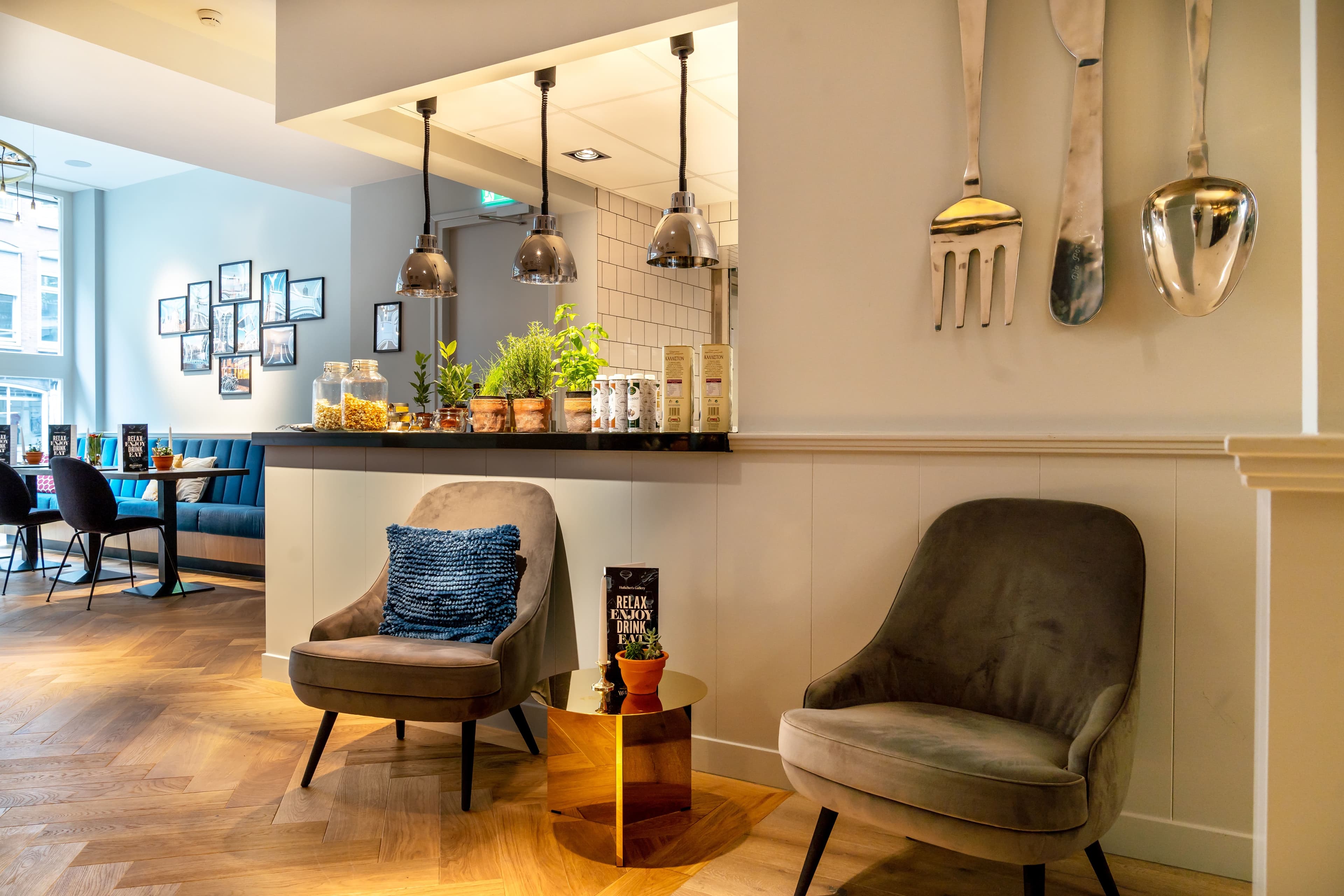 The hotel’s on-site restaurant Hulscher's is known for its traditional Dutch dishes. The Bar-Bodega De Blauwe Parade is decorated with an original Delft tile fresco, the biggest one in the world. Here we offer jenever (Dutch gin) and liqueur tastings, as well as serving other drinks and light meals.