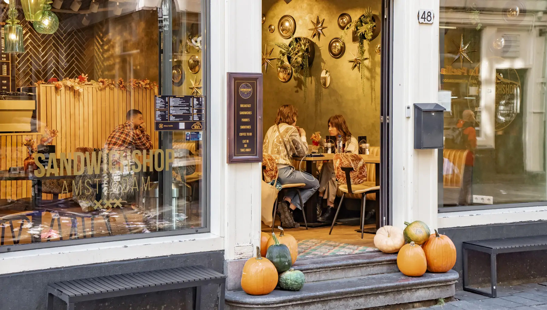 Bestel een gezond sapje, de beroemde gegrilde aubergine met saffraanyoghurt en granaatappelpitjes of het legendarische broodje kipcurry. Allemaal vers, organic en, waar mogelijk, lokaal.