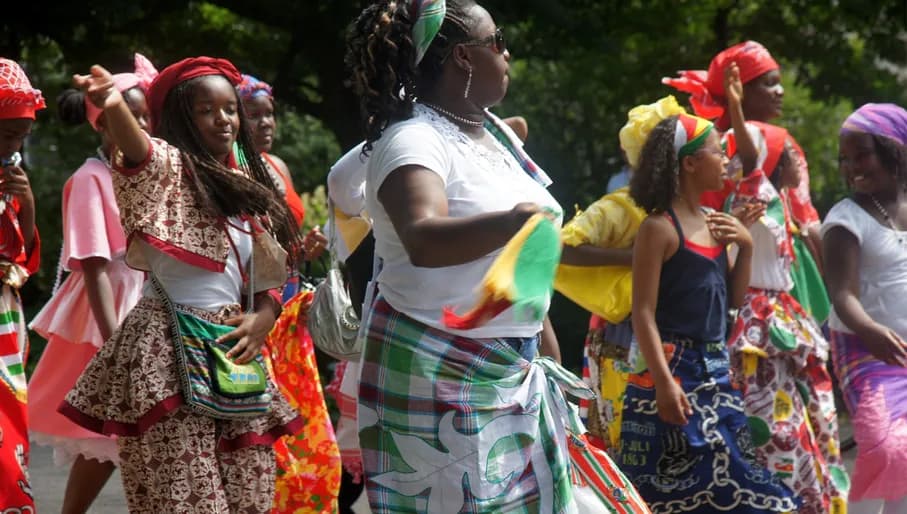 Performers and dancing kids Keti Koti Festival 2022 in the Oosterpark.