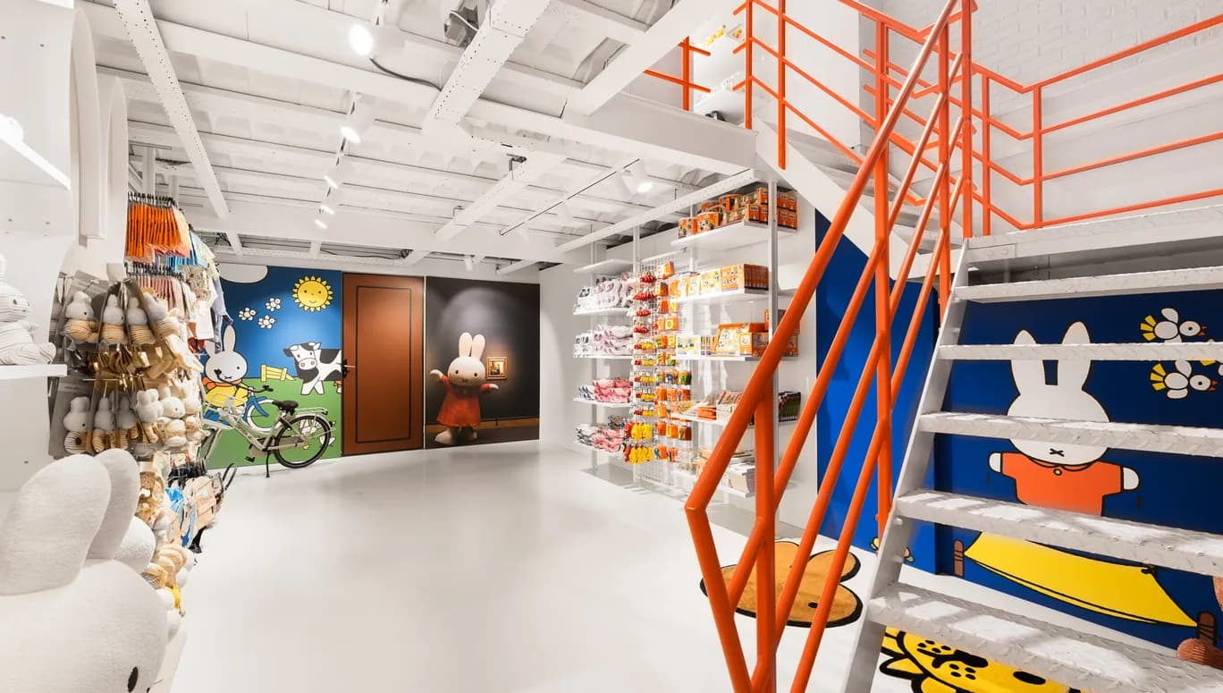 Ook de winkel van Nijntje heeft er een vestiging bij; een paradijs van 112 vierkante meter vol boekjes, knuffels, zilveren bestek, lampen en verzamelobjecten. Zorg dat je telefoon is opgeladen: je kunt hier op de kiek met Nijntje en een Hollandse Meester of stapt samen met het beroemde konijn op de fiets voor een fotosessie.