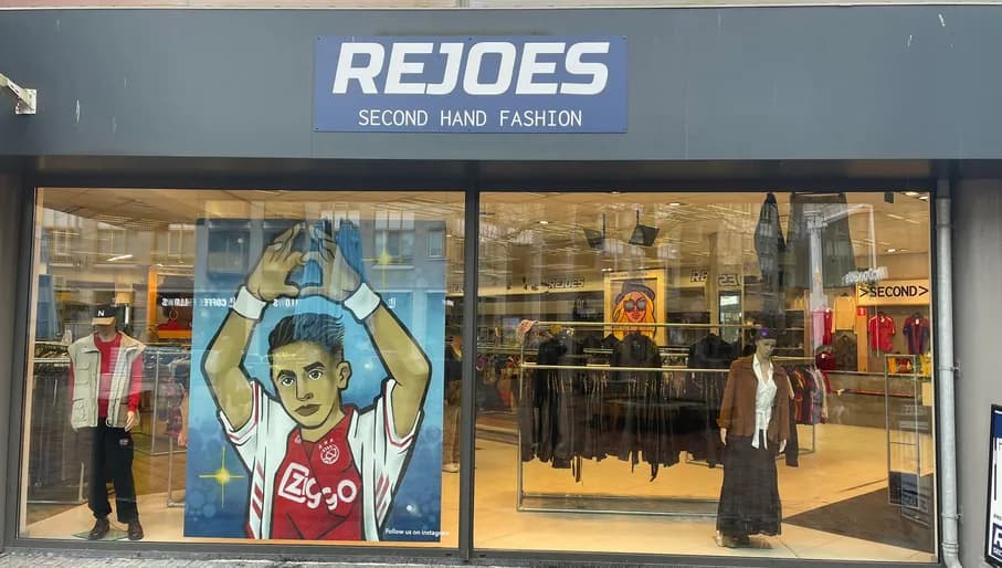 Nieuwe outfit voor weinig geld? Bij Rejoes vind je tweedehandskleding die boven op de trend zit. Unique selling point is de uitgebreide collectie voetbalshirts, waar de goede snuffelaar – met een beetje geluk – ook bijzondere collector’s items tussen spot.